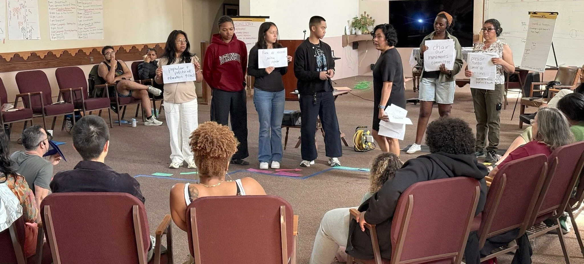 To carry this history forward, El Teatro Campesino guided the cohort in embodying the CSO story. Participants stepped into the roles of Fred Ross, César Chávez, Dolores Huerta, and the everyday people who organized their neighbors. Teatro reminded us: culture is not decoration, it is resistance. It is a structured practice for building collective identity, surfacing wisdom, and developing leaders across generations.